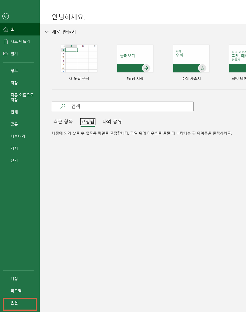 2. 홈 - 옵션 메뉴를 클릭한다.