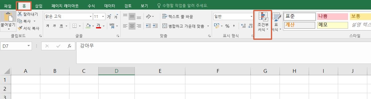 2. 엑셀 중복값 표시/찾기 - 두 번째 방법 : 조건부 서식(선택적 중복 값)